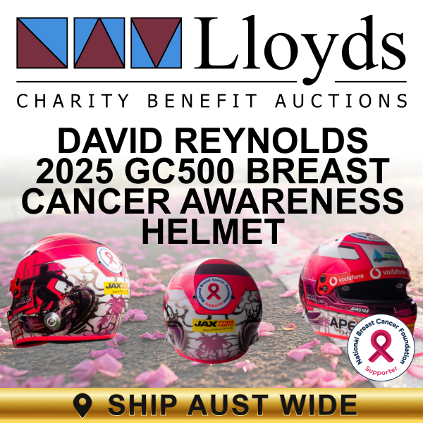 With a unique design featuring a classic Gold Coast scene with a surfer riding a wave. The helmet carries direct race provenance and an estimated value of over $8,500, offering fans and collectors a rare chance to own a genuine piece of motorsport history while supporting an important cause.