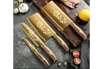 **UNRESERVED** 4pc Knife Set, Golden Finish,...
