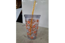 Plastic straw cup, Orange MnM SOLD AS LOT...