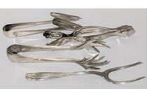 Vintage silver coloured sugar tongs & fork, qty...