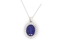 14K WHITE GOLD, TANZANITE AND DIAMOND, HALO...
