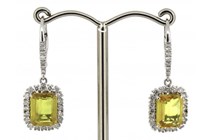 14K WHITE GOLD, YELLOW SAPPHIRE AND DIAMOND, DROP...