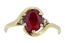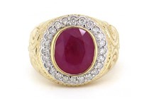 14K YELLOW GOLD, RUBY AND DIAMOND, GENTS RING....