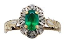 14K YELLOW/WHITE GOLD, EMERALD AND DIAMOND, ART...