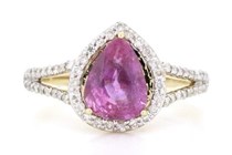 14K YELLOW/WHITE GOLD, PINK SAPPHIRE AND DIAMOND,...