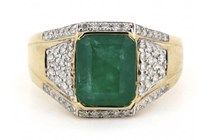 14K YELLOW GOLD, EMERALD AND DIAMOND, GENTS RING....
