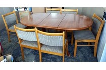 Table and chairs, timber style extentable table...