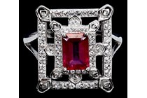 NATURAL BLOOD RED RUBY & TOPAZ ART DECO RING....