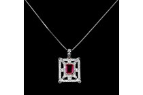 NATURAL BLOOD RED RUBY & TOPAZ ART DECO PENDANT &...