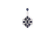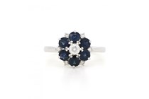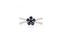 14K WHITE GOLD, SAPPHIRE AND DIAMOND FLORAL...