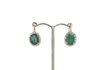 14K ROSE GOLD, EMERALD AND DIAMOND, HALO DROP...