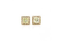 14K YELLOW GOLD, FANCY YELLOW DIAMOND, HALO STUD...