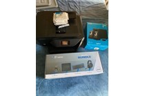 Set of electrical items: Apple TV box, water...