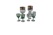 Assorted glassware including gold rimmed wine...
