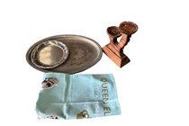 Assorted items including metal serving trays,...