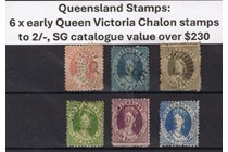 Queensland stamps: 6 x early Queen Victoria...