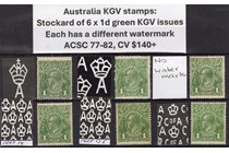 Australia KGV stamps: stockcard of 6 x 1d green...