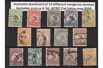 Australia stockcard of 14 different kangaroo...