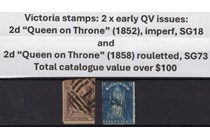 Victoria stamps: 2 x early QV issues, 2d "Queen...