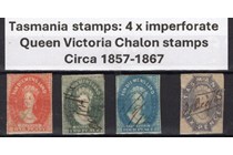 Tasmania stamps: 4 x imperforate Queen Victoria...