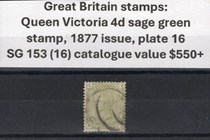 Great Britain stamps: Queen Victoria 4d sage...