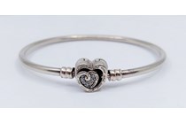 Stone Set Heart Charm Bangle, Pandora Size...
