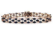 14K ROSE GOLD BLUE SAPPHIRE AND DIAMOND TRIPLE...