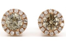 14K ROSE GOLD YELLOW DIAMOND HALO STUD EARRINGS...