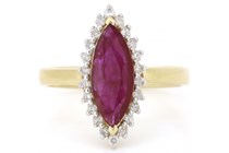 9K YELLOW GOLD RUBY AND DIAMOND RING Featuring...