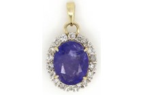 14K YELLOW GOLD TANZANITE AND DIAMOND HALO...