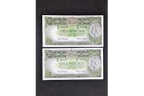 TWO AUSTRALIAN 1961 RESERVE BANK ONE POUND NOTE...