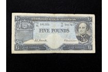 AUSTRALIAN 1960 RESERVE BANK FIVE POUND NOTE...
