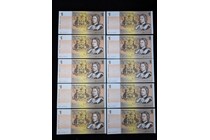 TEN AUSTRALIAN 1982 CONSECUTIVE ONE DOLLAR NOTE...