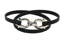 SALVATORE FERRAGAMO GANCINI BLACK LEATHER GOLD...