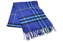 BURBERRY BLUE FRINGED CHECKED CASHMERE-BLEND...