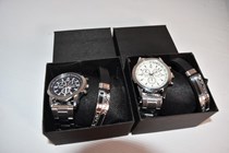 2x Mens Watch & Bracelet sets, Dark & White faced...