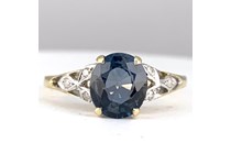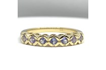 9K GOLD YELLOW NATURAL TANZANITE AND DIAMOND RING...