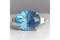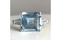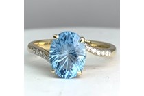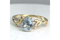 9K YELLOW GOLD SWISS BLUE TOPAZ AND DIAMOND RING...