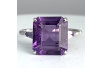 9K WHITE GOLD AMETHYST AND DIAMOND RING NATURAL...