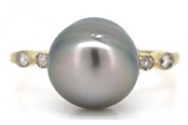 14K YELLOW GOLD, GREY CULTURED TAHITIAN PEARL AND...