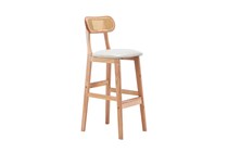 RRP $368, Rattan Bar Chair, Wood, White Beige Seat
