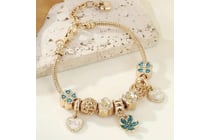 Golden-Tone with Pink & Blue Floral Charm Bracelet
