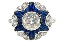 18CT WHITE GOLD DIAMOND AND BLUE SAPPHIRE RING...