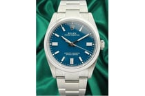 ROLEX OYSTER PERPETUAL 36 MED BLUE INDEX DIAL...