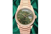 ROLEX DAY-DATE 36 EVEROSE GOLD OLIVE DIAL 128235...
