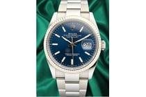 ROLEX DATEJUST 36 BLUE INDEX DIAL FLUTED OYSTER...