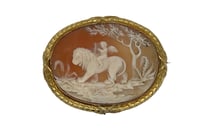 18CT YELLOW GOLD SHELL CAMEO "ANGEL/LION...