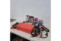 ASSORTED BOX, WIELDING HELMET, POWER CABLES, MIG...