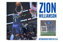 ZION WILLIAMSON AUTOGRAPHED PHOTO — CERTIFIED BY...
