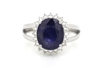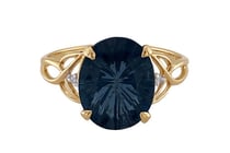 9CT YELLOW GOLD NATURAL IOLITE & DIAMOND RING...